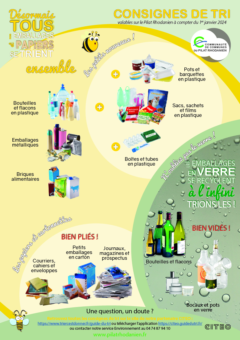 Depuis le 1er janvier 2024, les papiers et cartonnettes se trient en mélange avec les emballages (emballages plastiques, métalliques et briques alimentaires).